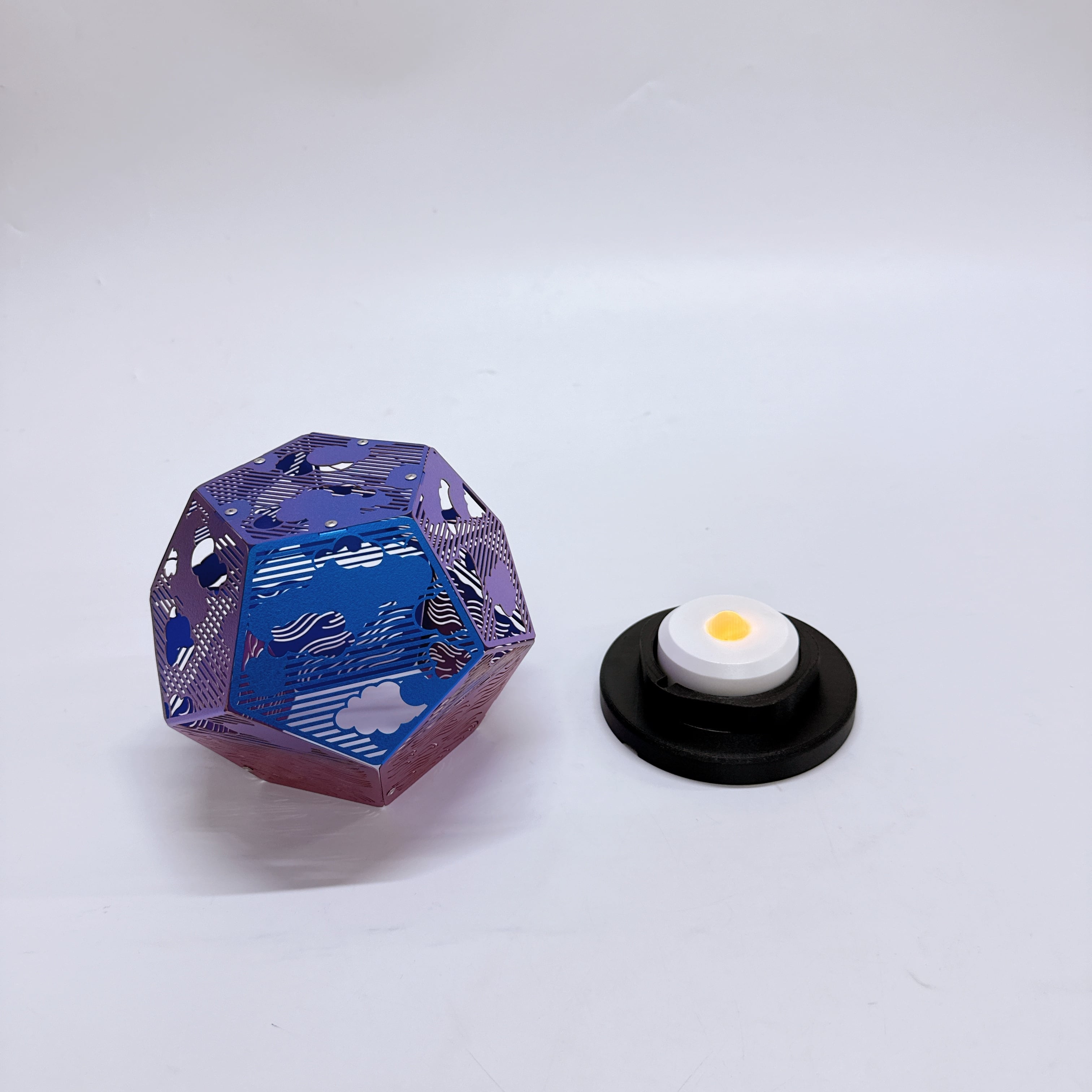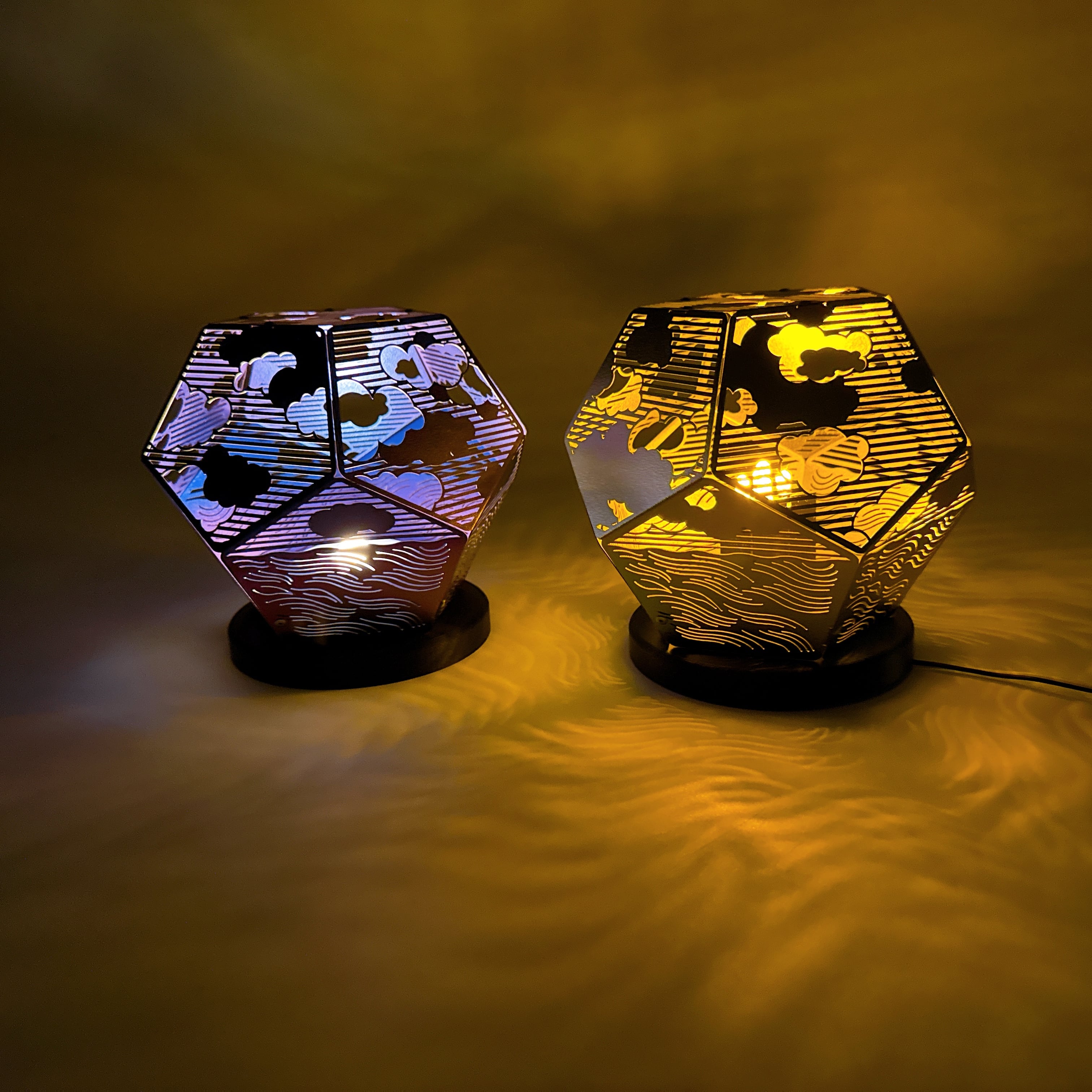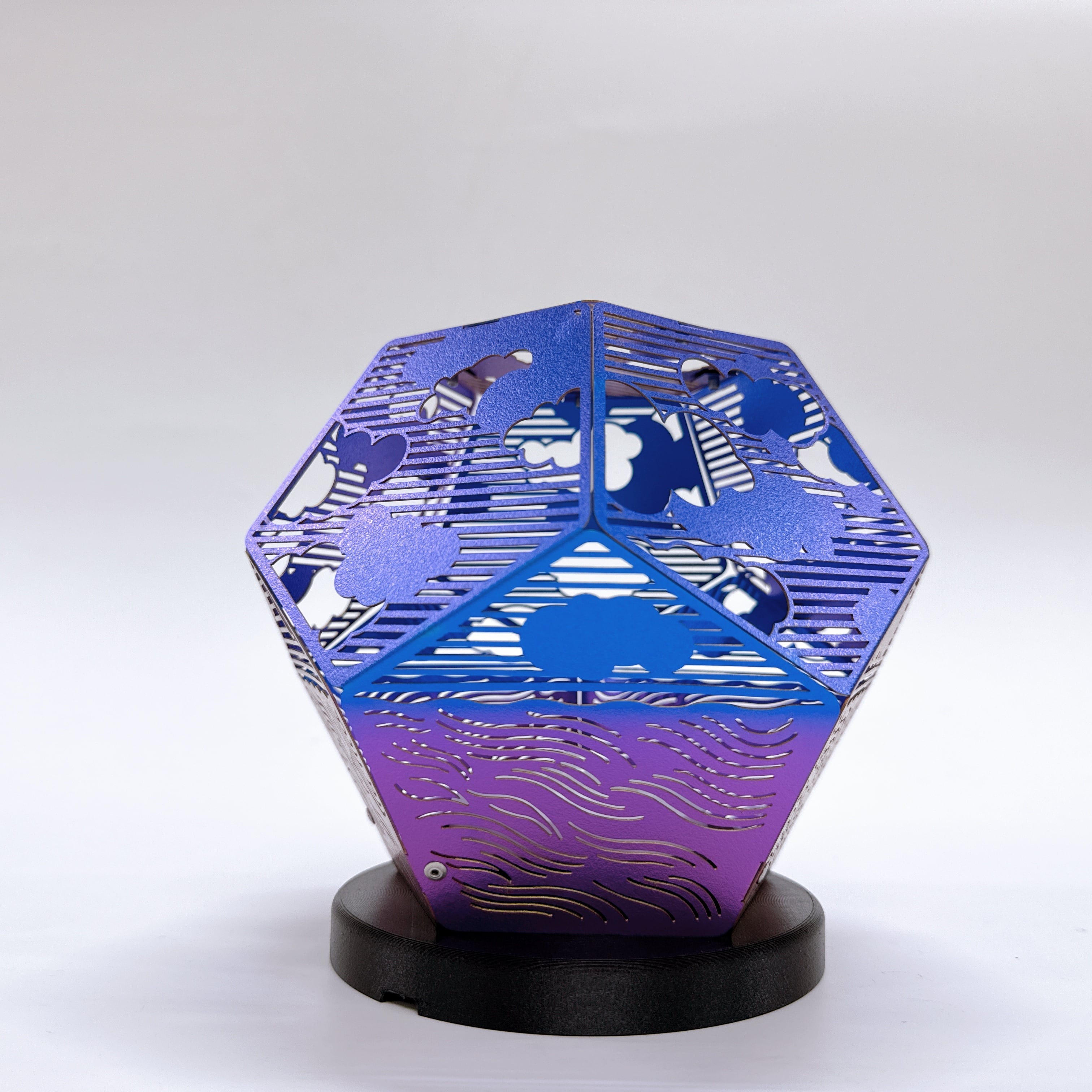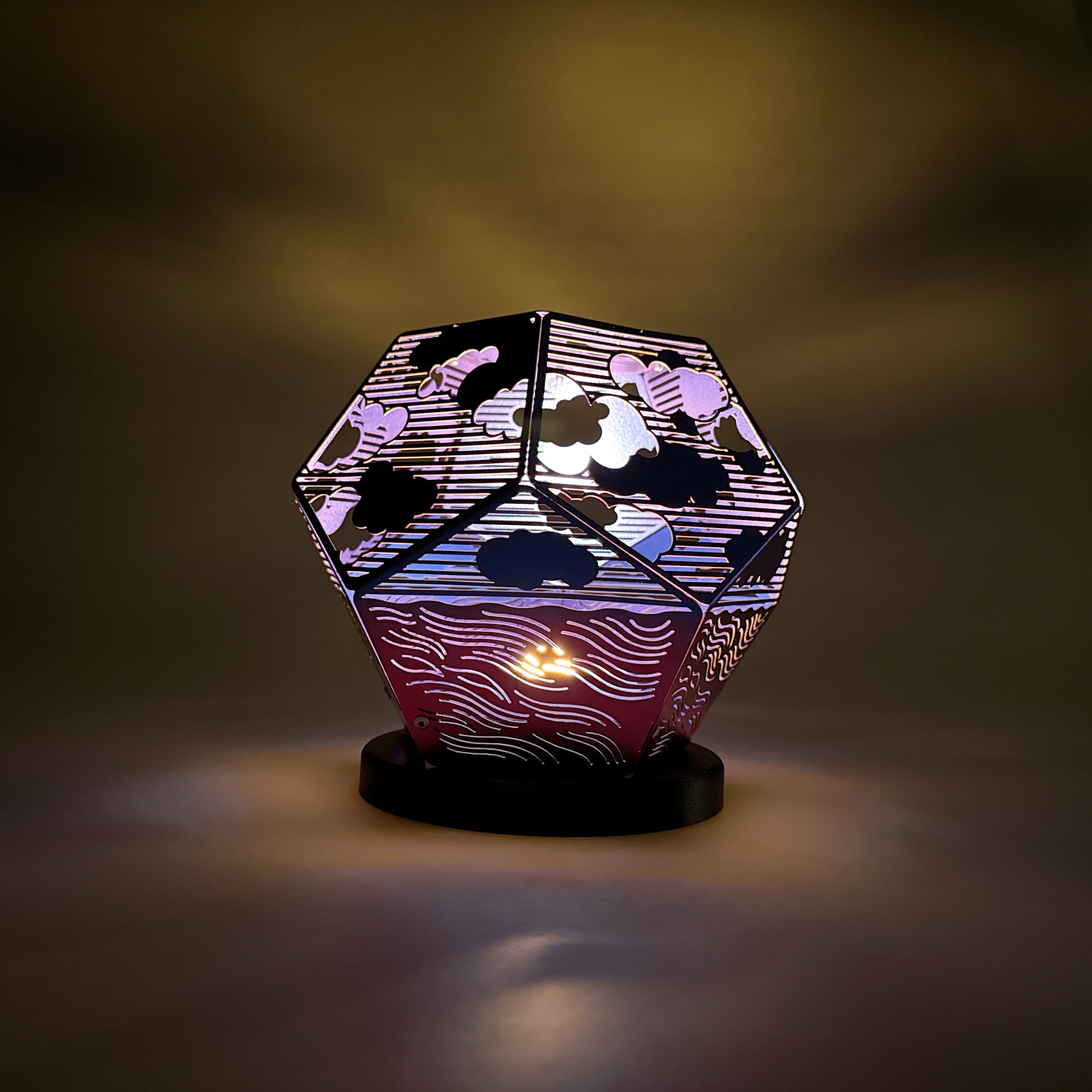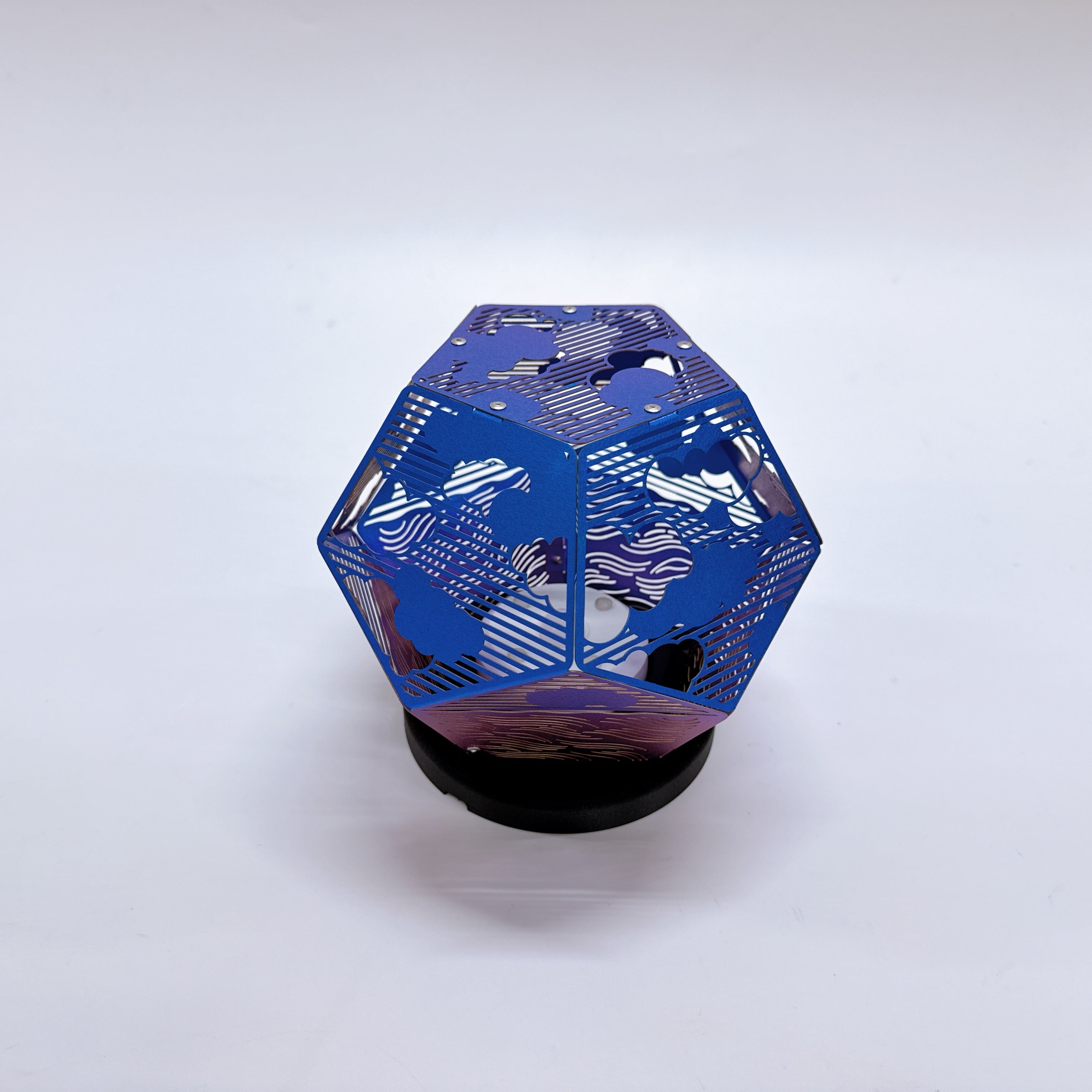 十二面体の一面一面に切り込まれた雲と波は、